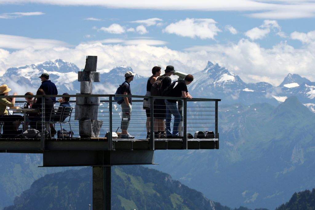 Visitors enjoying the beautiful views from the top of Rigi