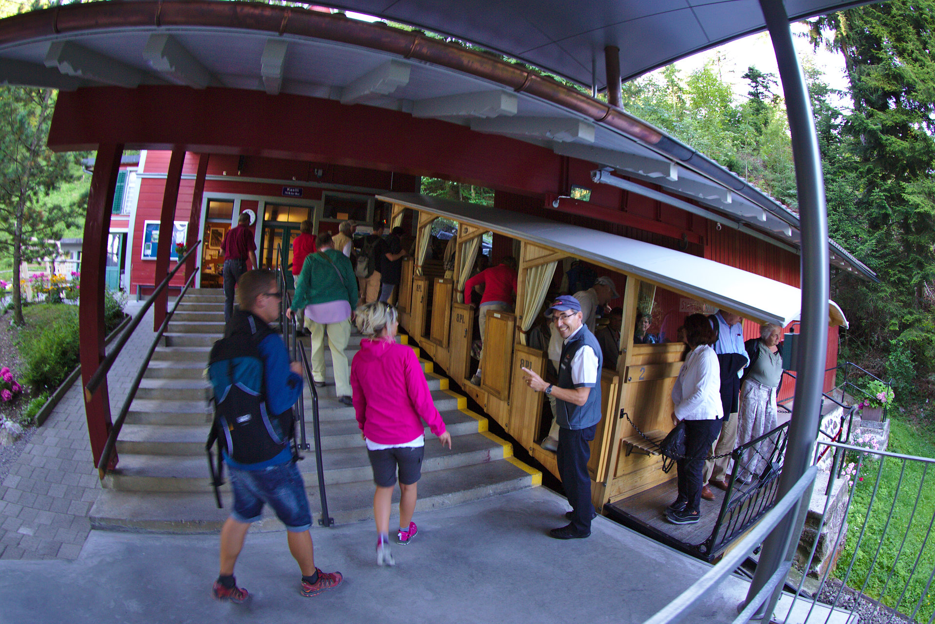 The first part of the trip up to Stanserhorn is with a historical mountain train.