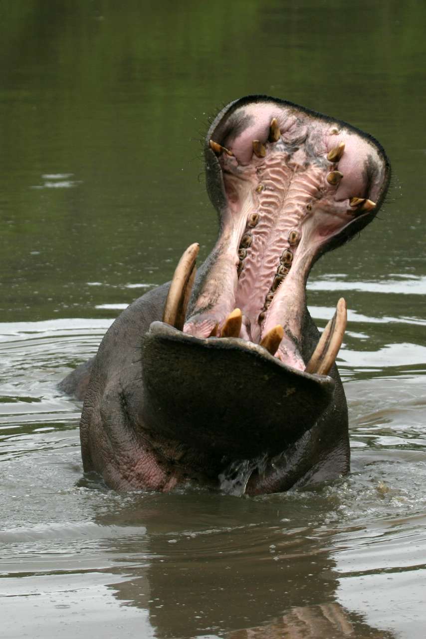 Hippopotamus teeth It wasn't alarmed, it wasn't making noise. Maybe it was just yawning?