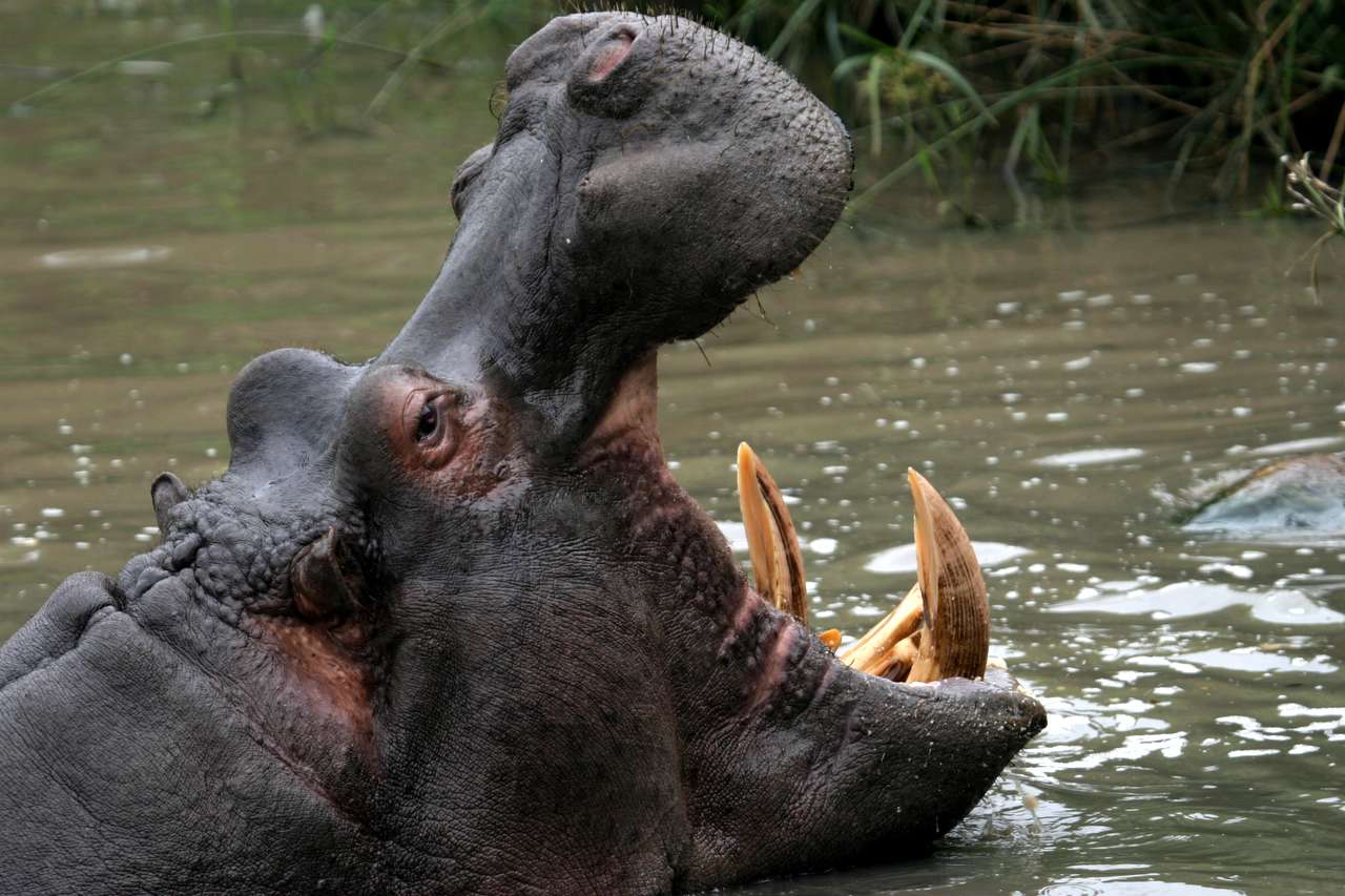 They feed these hippos. Loaves of bread! Feeding time for the hippos. They were tossing whole loaves of old bread, right into their mouths.