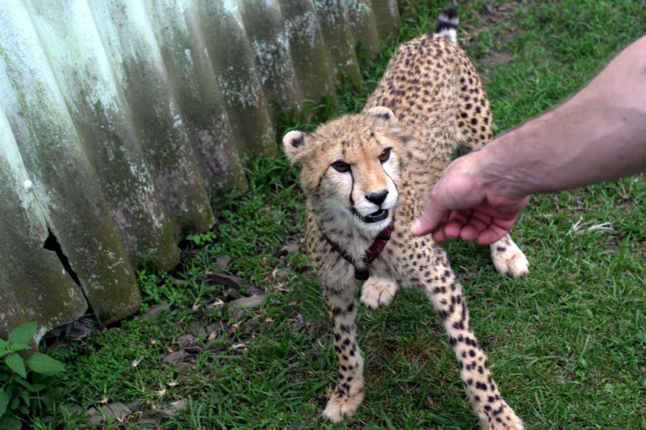 Young cheetah, very friendly. When we arrived, this guy was pacing. I spoke to him and reached inside to scartch his head. He purred, very loud! He was lonely.