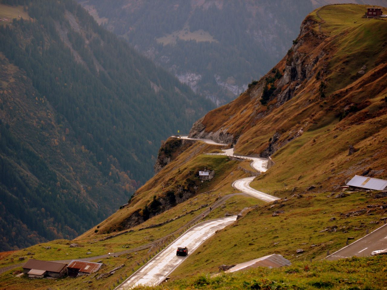 Way back down from Klausen on the Klausen pass Another hairpin road to take you back down towards Fluelen.