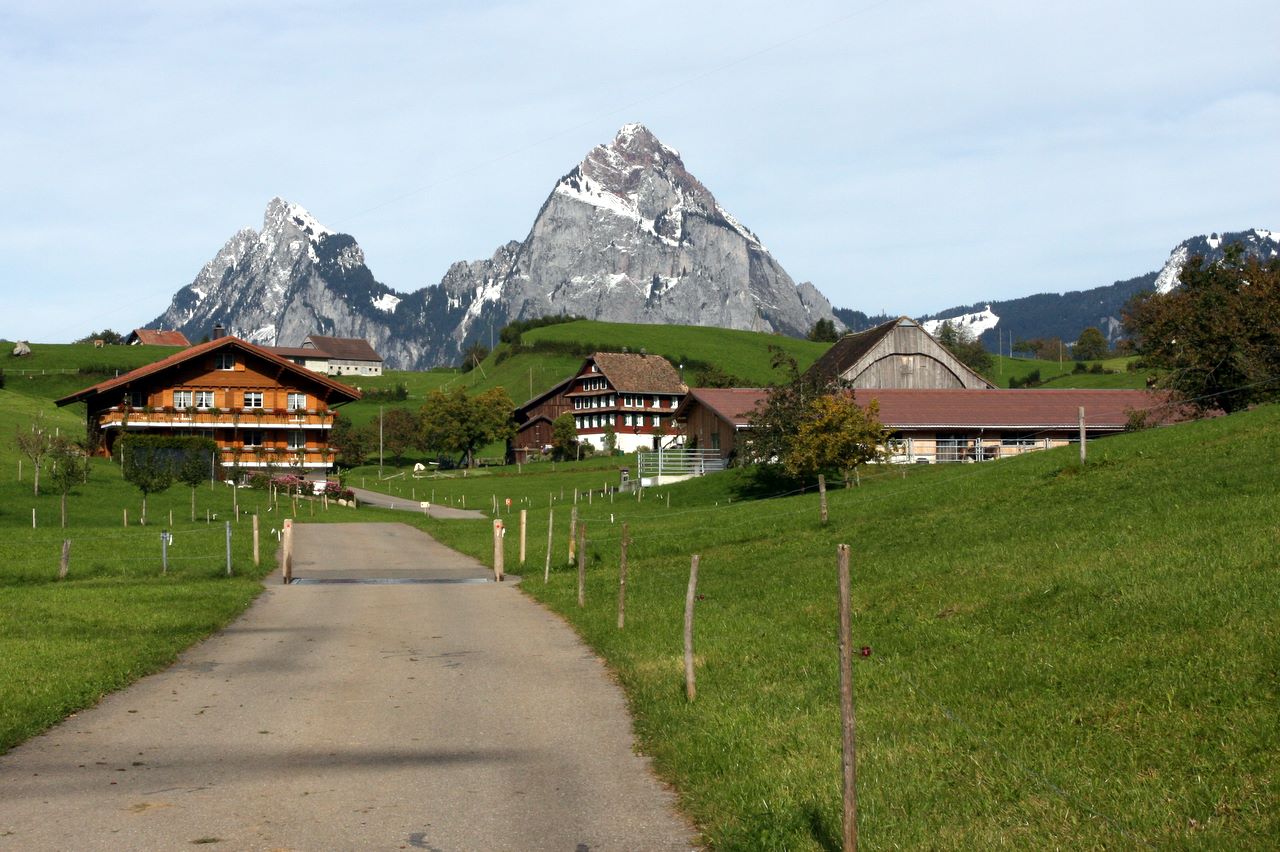 View from a village on Stoos. There were many holiday places at this location with a beautiful backdrop.