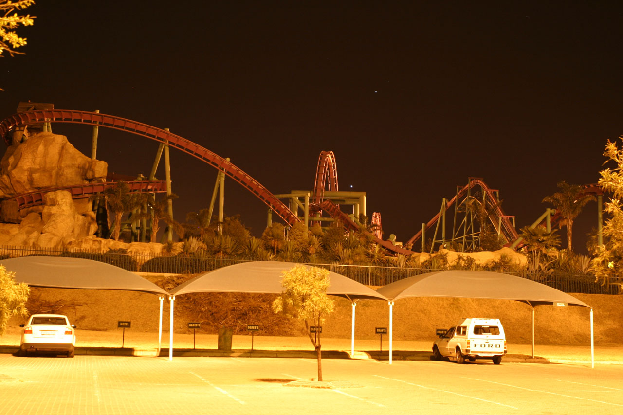 We were staying at Gold Reef City. The hotel was actually INSIDE the amuzement park, so we could wander around the park at night. This was not only great fun but also resulted in some interesting pictures.