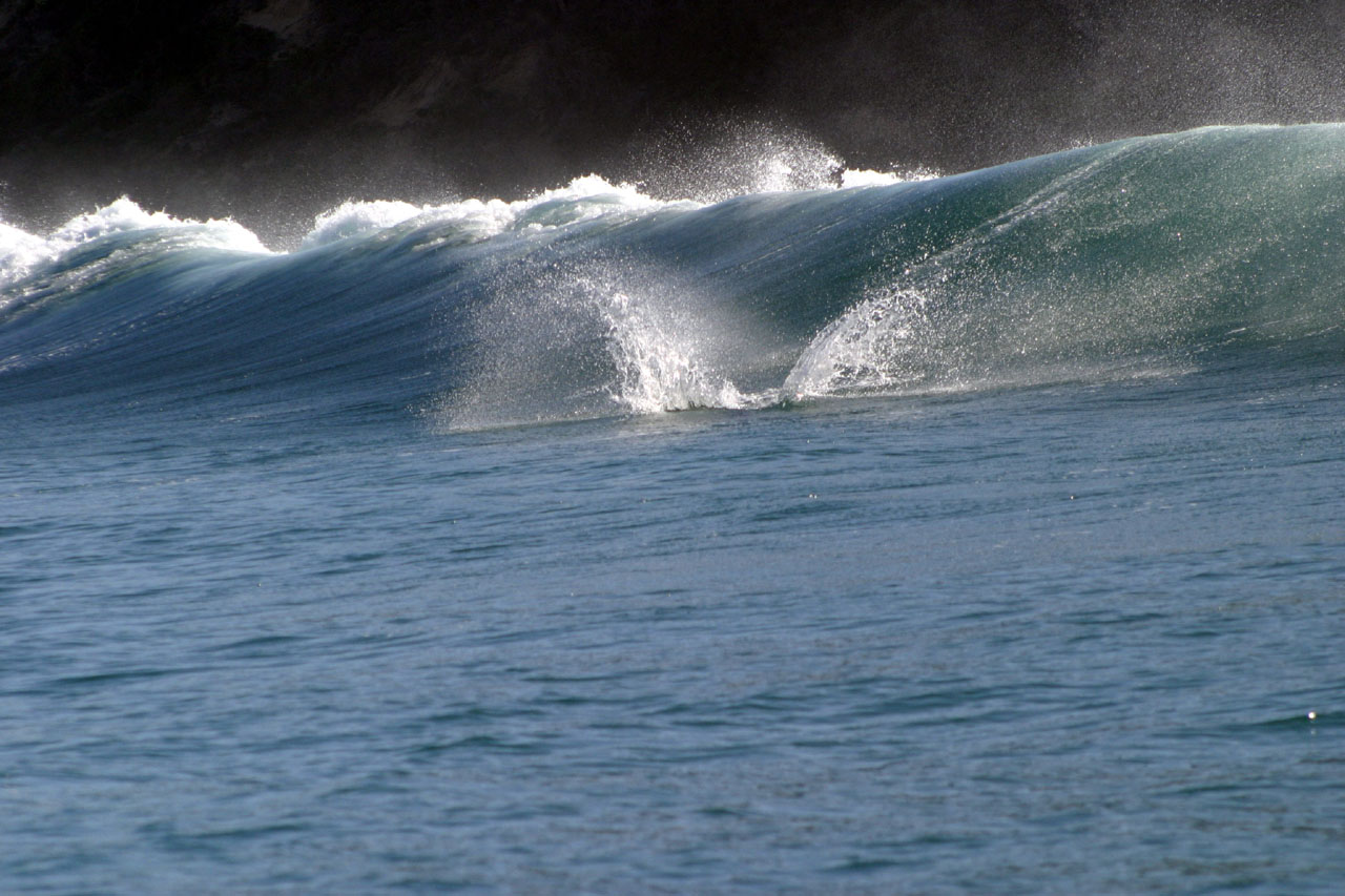 One of the fascinating things to see when you go on a whale trip like that are the waves from the ocean side. Some dolphins were playing in the waves. As they only come up very briefly it is almost impossible to get a decent picture, but you can see the splash in the waves that was created by one of the dolphins.