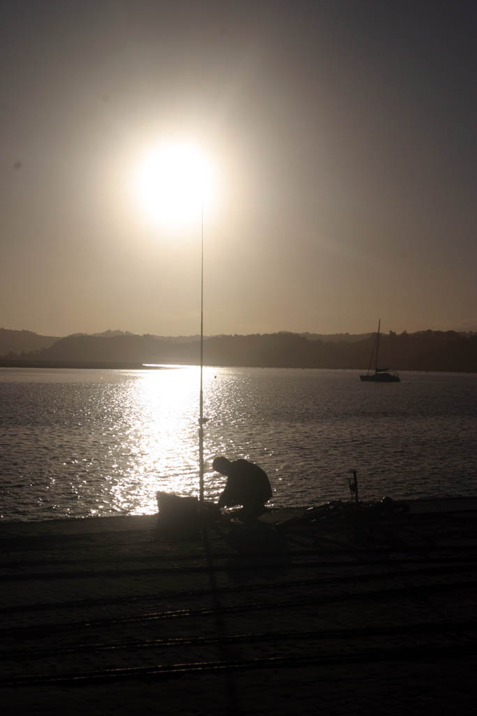Boy fishing close to sunset