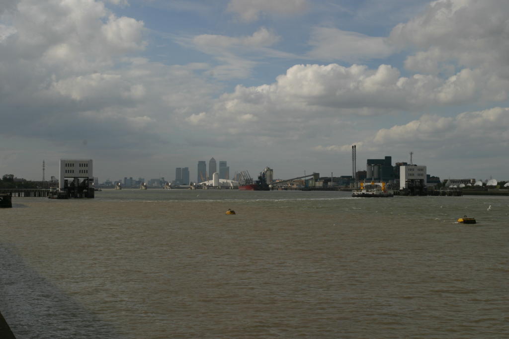 View west along the Thames. Millenium Dome.