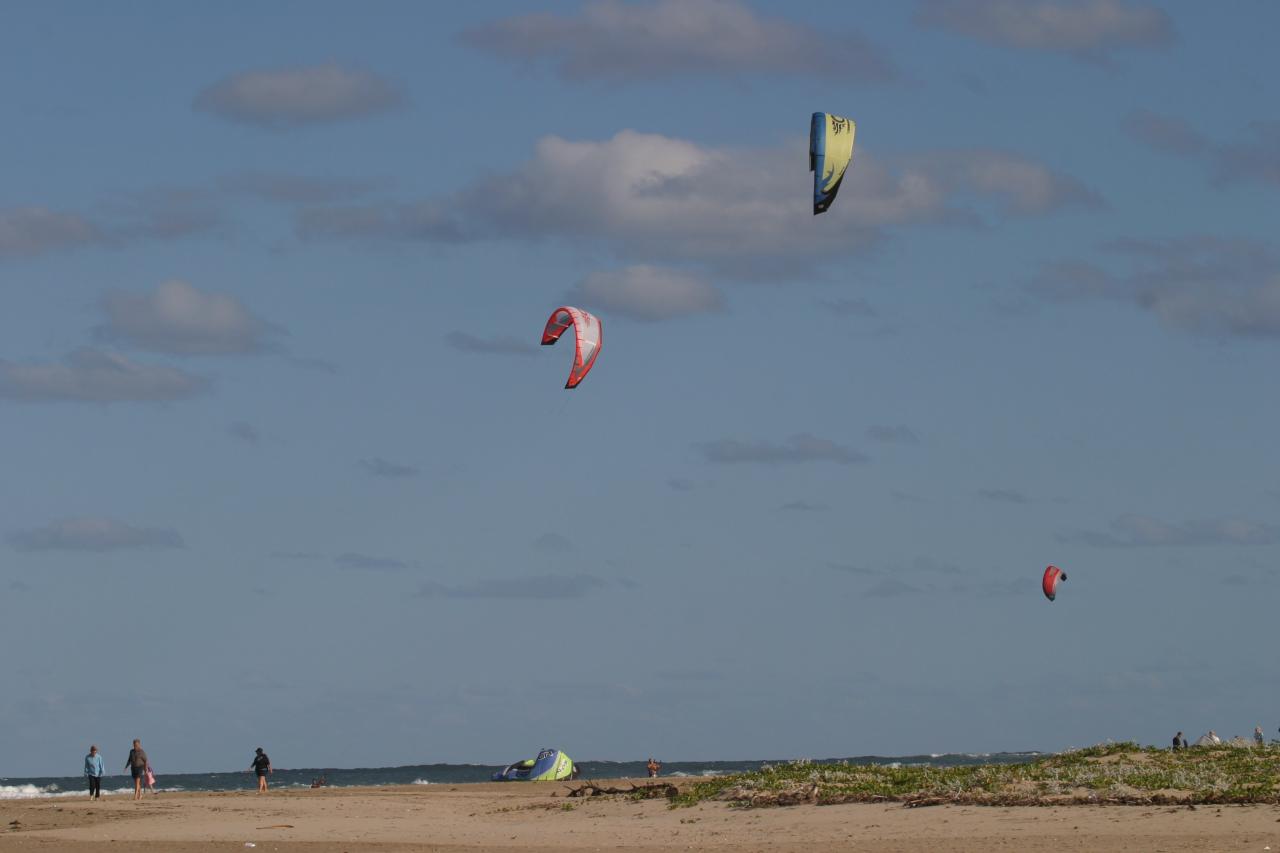 Many kites. There was a group of kite surfers.