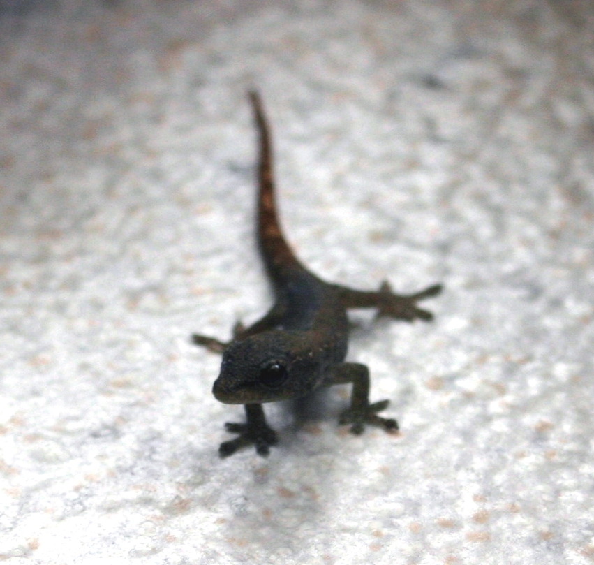 There are geckos out at night. These are nearly the color of the house, and we wonder if they might change colors. They come out as dusk starts and we see them mostly on the house. I’d like to get better photos! It requires both of us as a flashlight must be aimed before the camera will focus. Exactly which sort of gecko this is, I can’t say. They are identified mainly by their toes, and the geckos won’t let me play with their feet!