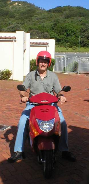 I got my scooter and an old helmet. They could find no new helmet in my size, anywhere in South Africa. (Probably XXL BUT maybe bigger). Even then, the old open-face helmet won’t fit in the helmet compartment under my seat!