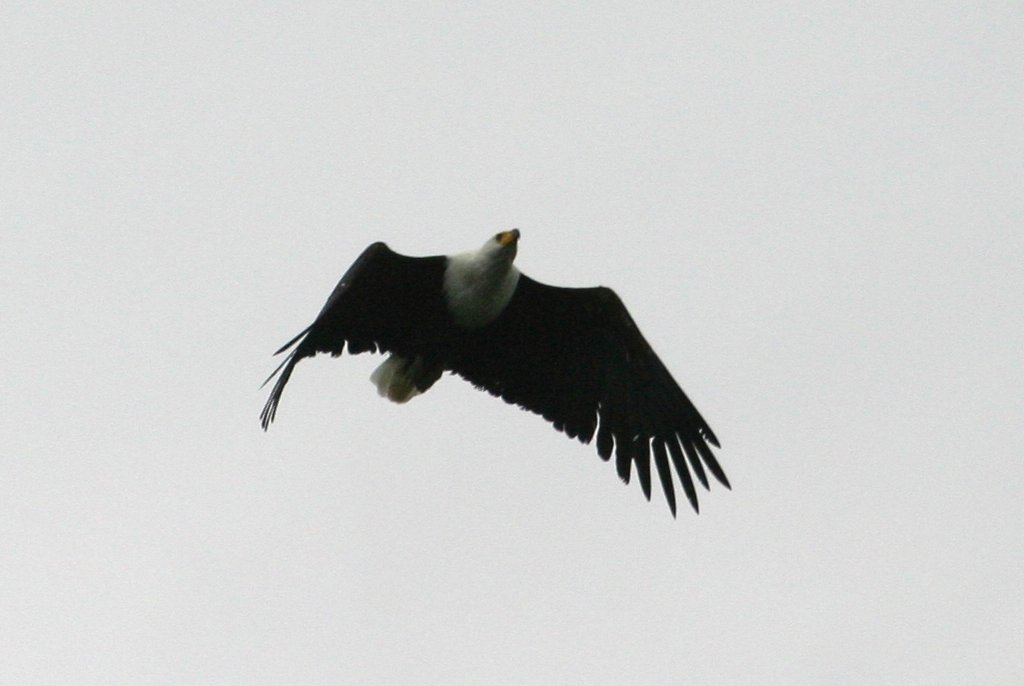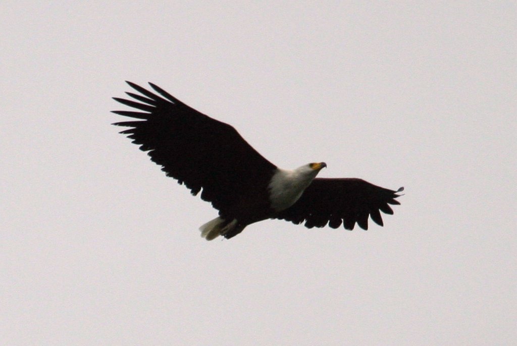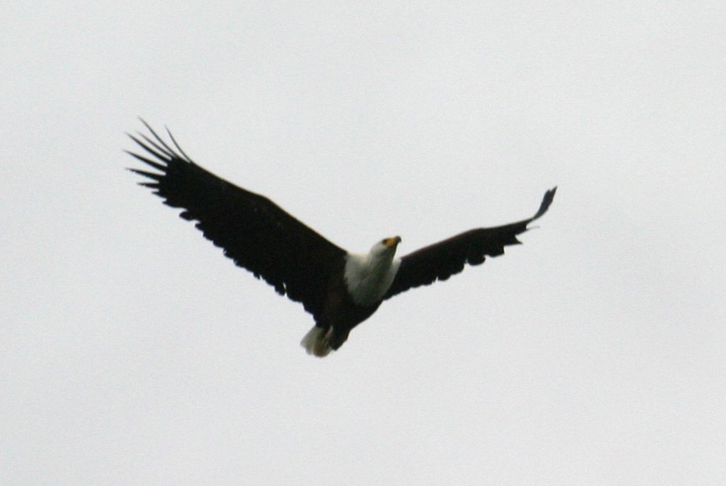 We regularly have fisheagles that come by and circle above the estuary by our place, looking for fish. Usually, they are too far to make a good picture of, but this one basically flew above our house, giving us a good chance to take some pictures. Unfortunately, the weather was overcast, so the colours did not come out too well. Click on the images to get a larger version: