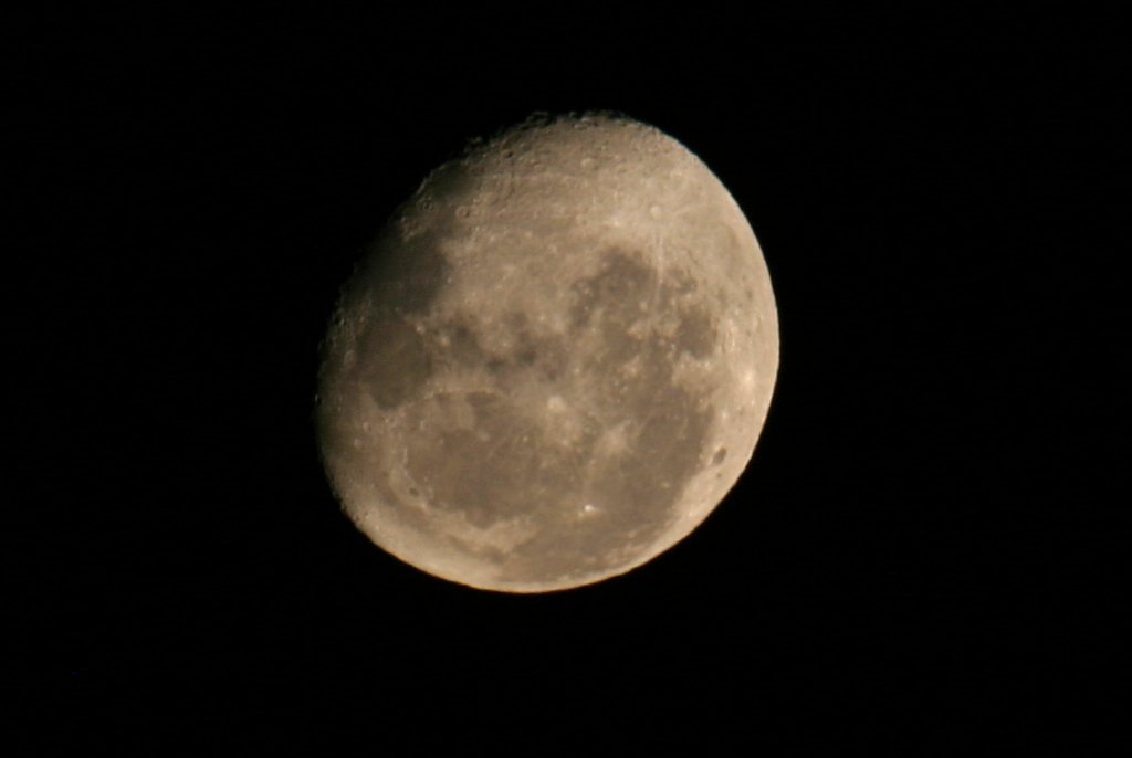A couple of days ago, the night sky was beautifully clear and the moon was mostly full so I decided to make a picture of the moon from South Africa. It was actually quite a bit of work since the picture kept coming out too bright, but I finally managed. Here is the result: