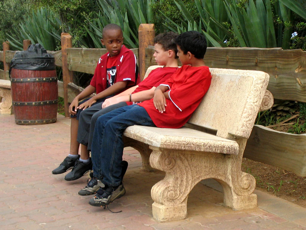 It is always delightful to see examples where kids of different cultural backgrounds actually hang out together. We therefore thought it was worthwile to take a picture of this engaged discussion between three boys of different colours at Gold Reef city: