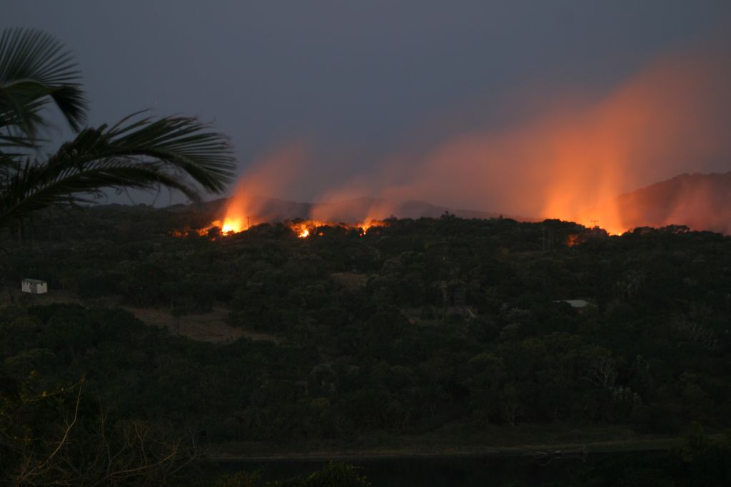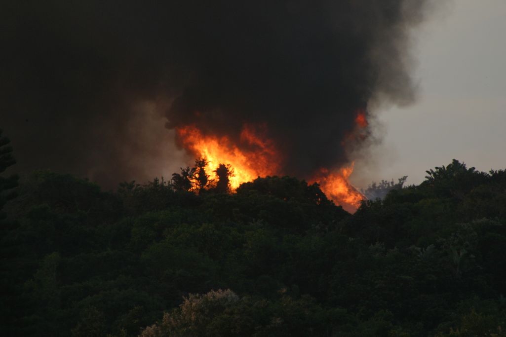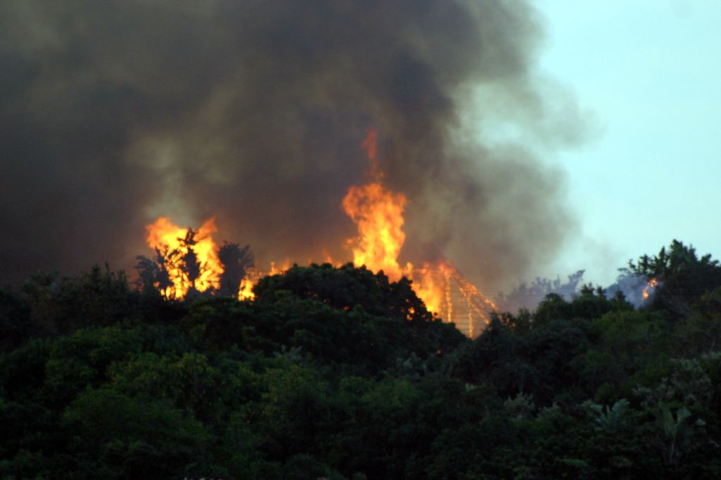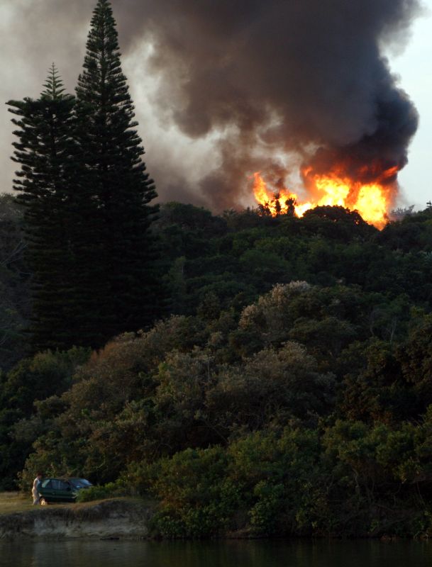 In general, July has been a very pleasant month with comfortable daytime temperatures around 24 degrees and chilly night time temperatures around 12. It has been very sunny and dry. So dry, in fact, that “veld fires” have been a very common occurance with several fields going up in flames a day. We witnessed a specatular fire on Saturday where several houses across the valey from us caught fire, seemingly independently, and at least one of them burned down completely! The trees also caught fire, resulting in what looked like a volcano erupting on the dune. Here are some of the pictures (click on them to get a larger version):